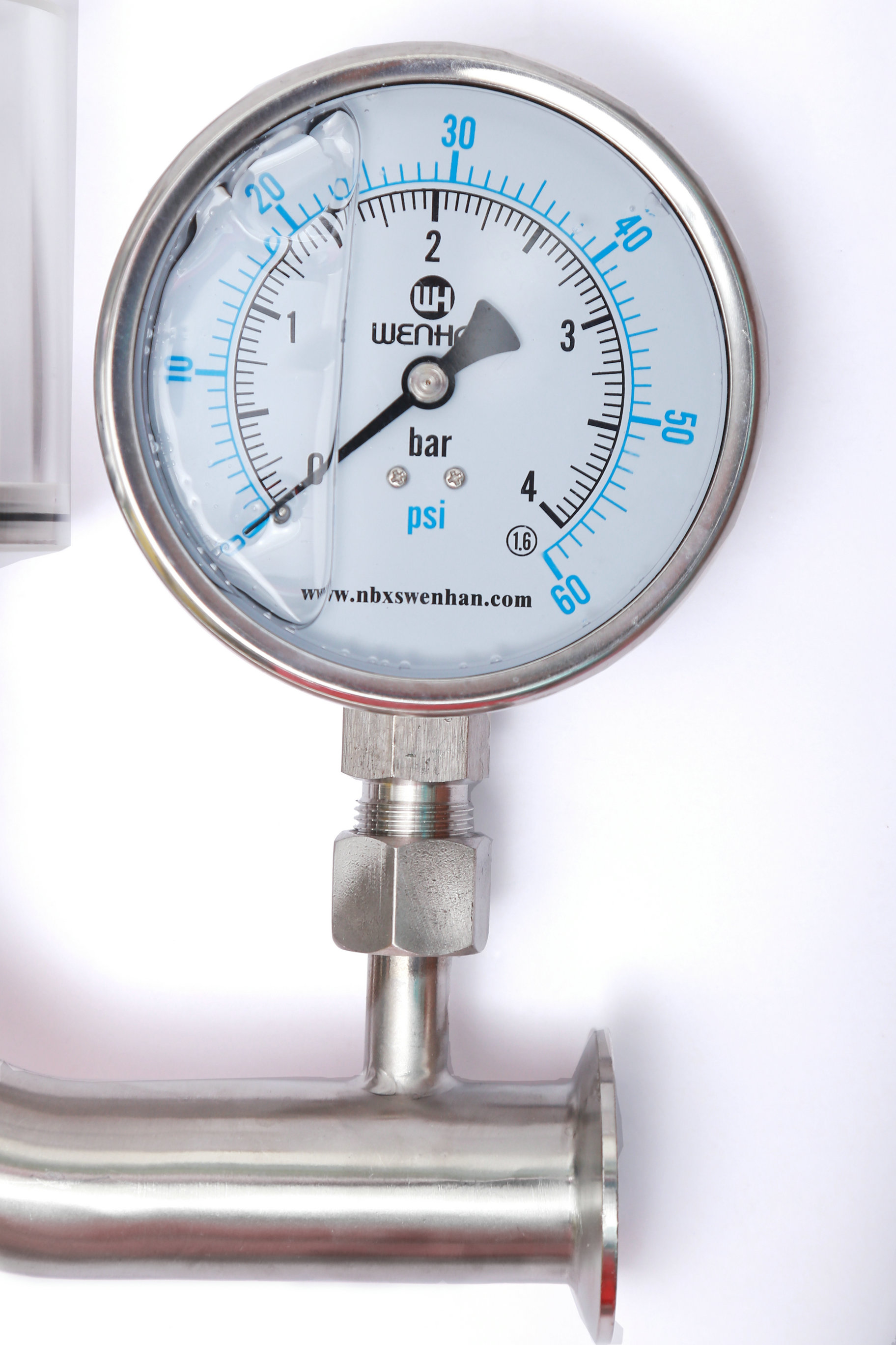 Wh-5101B鏈接;快裝 卡箍   壓力表,表盤Φ100. 壓力范圍0-4bar . M20*1.5  防震